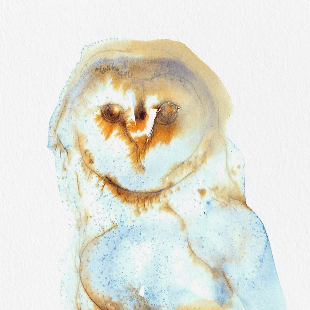 Giclée fine art print of an original watercolour painting with combination of ink and salt. This contemporary painting of Barn Owl is done with love and energetic brush strokes.